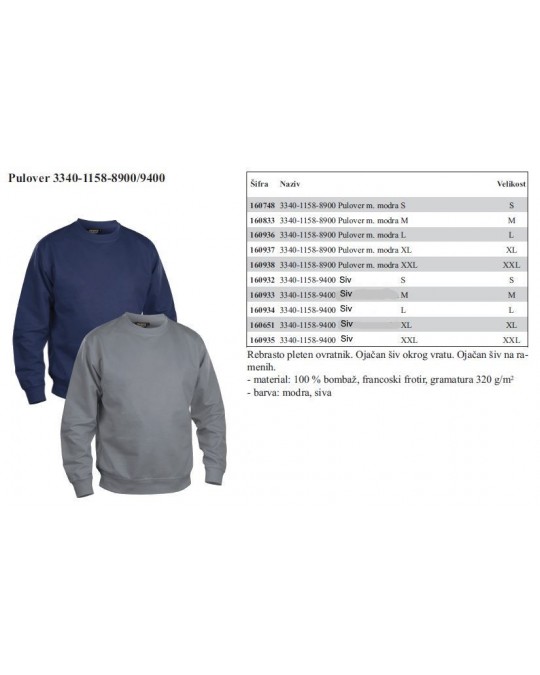 - material: 100 % bombaž, francoski frotir, gramatura 320 g/m2